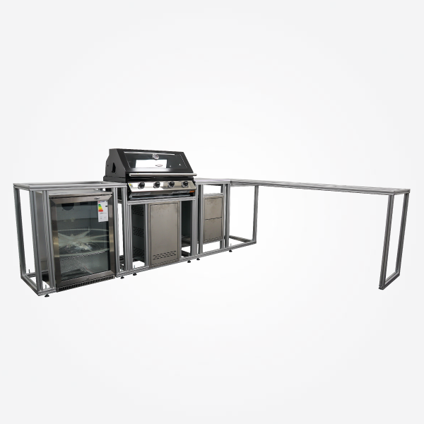 The foundation of your outdoor kitchen starts with our precision-engineered outdoor kitchen frame kits. Made from durable aluminium extrusions, these modular frames provide the perfect structure for your kitchen.